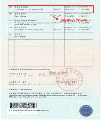 Z08负有指定保安职责船员培训合格证:主要是为那些在船舶上负有指定保安职责的船员设计的,旨在提升他们在船舶保安方面的专业能力和知识。应对和处理各种保安事件和威胁,需要熟悉船舶保安设备和系统的操作和维护,确保这些设备和系统在需要时能够正常运行。