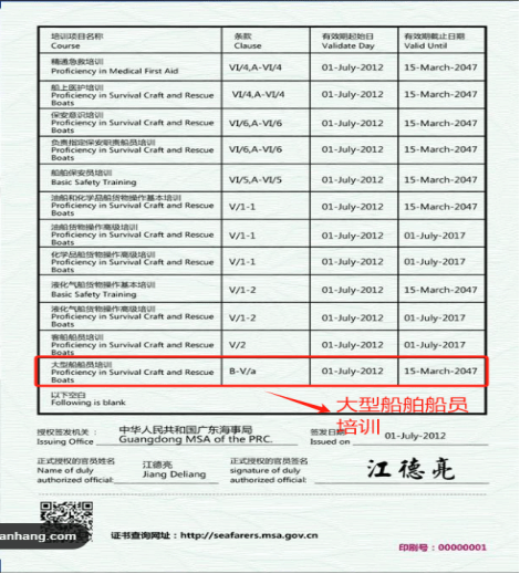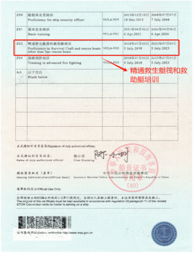 Z01基本安全培训合格证:这是航海人员的基本证书,涵盖了海上安全的基本知识和应急处理技能。