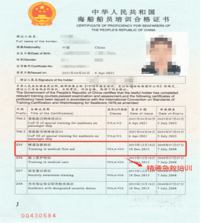 Z05精通急救培训合格证:航海人员需要掌握基本的急救知识和技能,以便在海上遇到伤病情况时能够及时进行处理。
