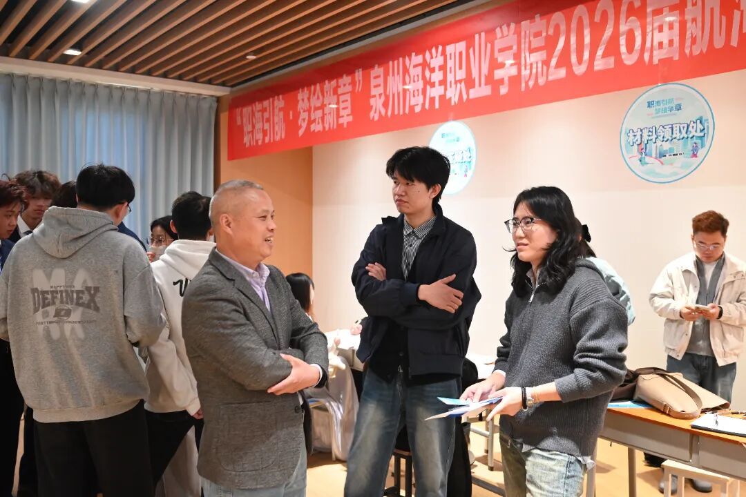 为切实破解毕业生就业难题,搭建校企高效对接平台,扎实推进2026届毕业生实习就业工作,11月25日-26日,泉州海洋职业学院航海交通学院2026届毕业生秋季双选会系列活动顺利开展。泉州海洋职业学院校长庄伟廉、校党委书记黄真真、副校长刘锦辉、陈永鑫、陈东水、对外合作部负责人莅临双选会现场指导工作,与企业代表、求职学生深入交流,为毕业生高质量就业“保驾护航”,推动招聘会取得丰硕成果。