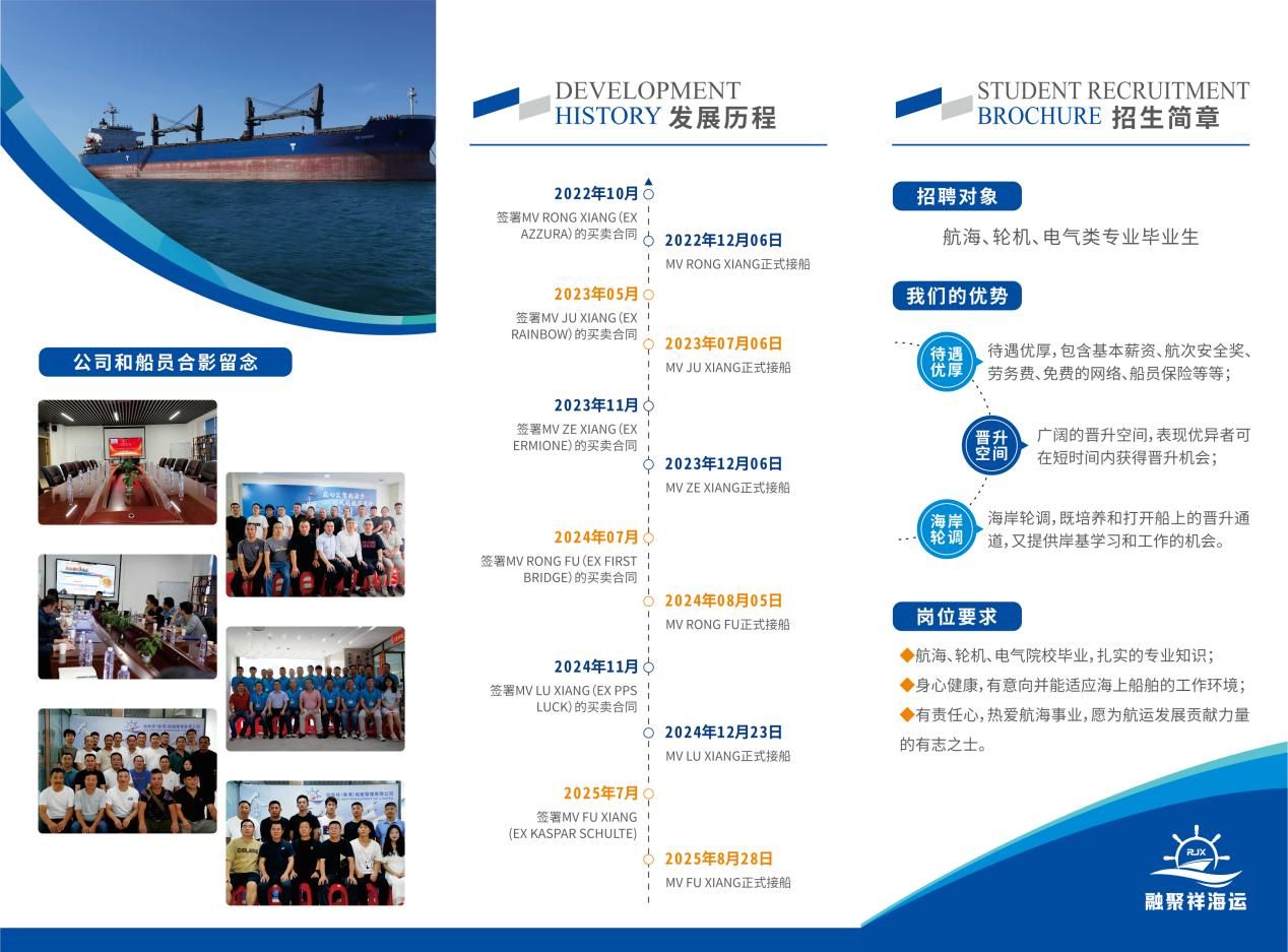 为深化校企合作、拓宽就业渠道,10月30日,航海交通学院与海洋工程学院代表联合前往厦门融聚祥国际海运有限公司开展访企拓岗活动。在企业负责人的带领下,团队实地参观了公司办公环境,直观了解企业专业高效的工作氛围与人文并重的管理模式,为后续交流奠定基础
