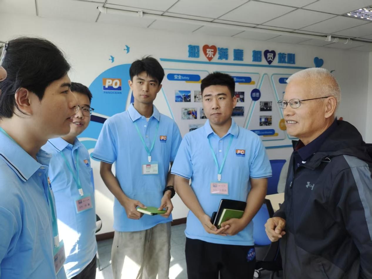 调研过程中,教育质量控制中心李国锋处长与在该公司工作的我校毕业生亲切交流,详细询问了他们的工作近况、职业发展规划,鼓励毕业生们立足岗位、勤学苦练,不断提升专业技能和综合素养,为航海事业发展贡献青春力量,同时叮嘱他们注意海上作业安全,常与学校保持联系。