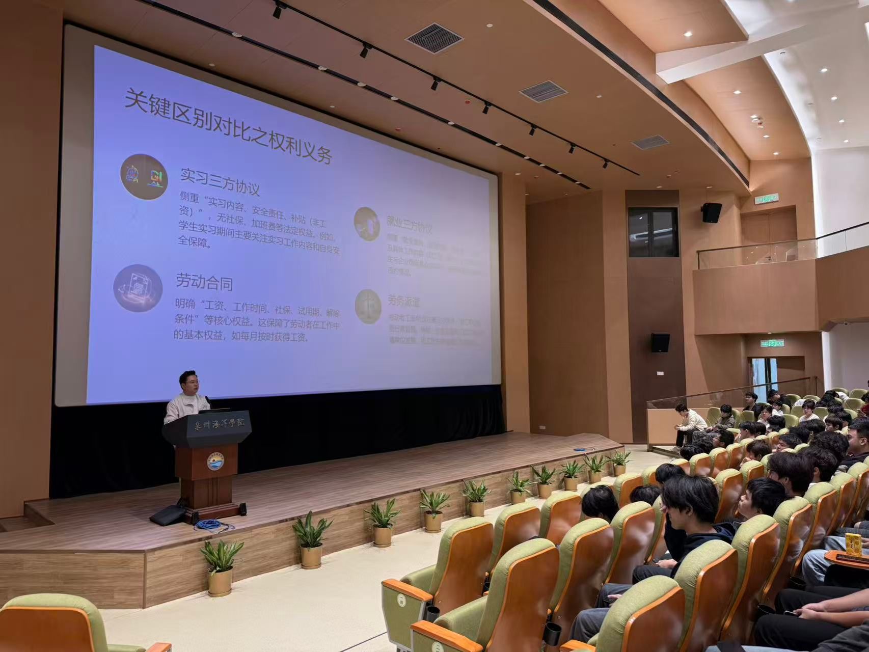 为强化航海技术专业学生就业法律风险防范意识,提升求职实战能力,助力学子精准对接航运行业就业需求,2025年10月27日,学院于图书馆2楼报告厅成功举办就业法律科普与求职技巧培训主题讲座。本次培训由辅导员李灿阳主讲,面向航海技术专业学生专属开展,以“法律护航+行业适配”为核心,为学生求职就业筑牢安全防线、明晰发展路径。