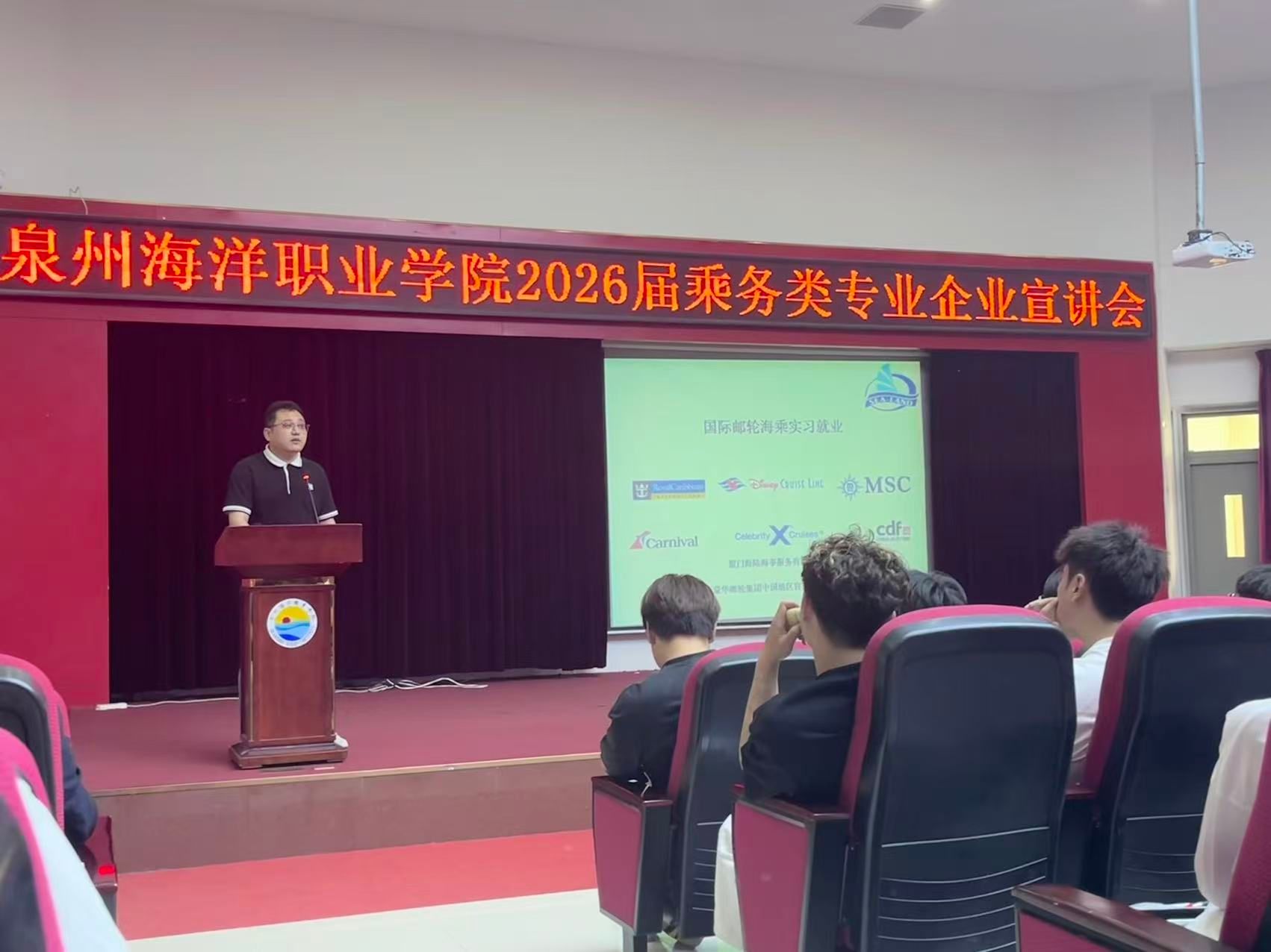 2025年5月26日,乘务类专业企业宣讲会第二场火热开启。本次活动以集中宣讲的形式,精准覆盖国际邮轮乘务管理、高速铁路客运服务、空中乘务三大专业,旨在汇聚行业优质资源,为学子搭建与名企直面交流的桥梁,帮助大家洞悉乘务领域的就业趋势与岗位需求,明晰职业发展方向,同时助力企业高效招揽适配人才,实现校企供需的精准对接。