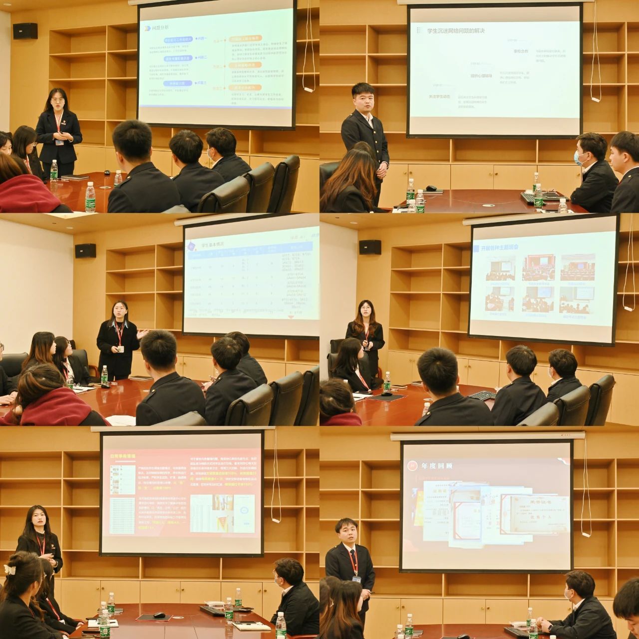 会上,各位辅导员重点围绕思想引领、安全教育、党团建设、学风班风、就业指导、心理健康、学生所获荣誉等方面,结合PPT以图文并茂的形式汇报了本年度工作情况。通过对学生日常管理的梳理与总结,凸显工作的优势,针对存在的不足及改进举措,提出了下一步工作的详细规划和安排,将优秀的学生工作实践经验提炼为学生工作理论成果,将目标和计划与学院发展规划进行深度融合,以更好地构建服务发展型的学生工作体系。