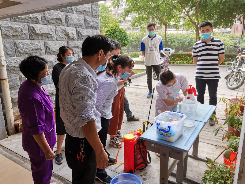 培训会上林凉凉医师从病毒消杀方式、消毒药物配比、重点场所消杀、消杀防护要点、口罩佩戴要求、手部清洁规范等方面进行了讲解培训和实操演练。会后倪书记一行走访图书馆和食堂,对学校相关人员密集场所的疫情防控工作进行指导。