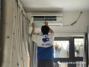 “免费上门清洗空调服务”来了。4月26日下午,后勤处宿管科老师和海洋工程学院“蓝鲸志愿服务队”的师生们齐聚4号学生公寓中庭,开始为之前预约登记的宿舍提供上门清洗空调滤网服务。