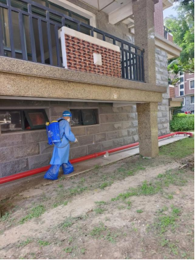 学校后勤根据计划安排,安排物业工作人员于5月25日、26日两天,对食堂、教室、办公室、宿舍、户外绿化进行全面消杀工作。清理食堂内外堆放的杂物,杜绝虫害的滋生场所;对各班级教室、卫生间、垃圾桶、墙角等潮湿地,采用喷雾器药物消杀方法,彻底消灭蚊蝇、鼠患,切断四害孳生地。
