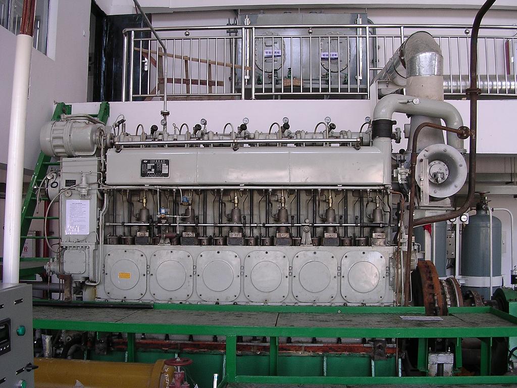 轮机实训中心动力装置操作间现有机舱集中控制室,驾驶台控制室。能显示、监测、控制机舱主要设备的各种参数,并具有故障报警功能。主要设备有6300型四冲程船舶柴油机及与之配套的水力测功器,能按教学要求进行柴油机各种工况下和运转特性(速度、负荷,推进,调速和限制特性)等柴油机特性曲线测试。有船用发电机两台、应急发电机一台,能在集控室进行主、应急发电机的手、自动并电 、切换,船用燃油付锅炉、锅炉模拟器各一台,能进行锅炉的模拟和实际操作,按照IMO防污染规范要求配置的油水分离器、生活污水处理装置,控制船舶航向的舵机、海船系泊装置的锚机、绞缆机,提供船用空气和初始动力的空压机、对船用油进行精密分离的分油机、改善船员生活条件的中央空调、储藏船员远洋生活食品的伙食冰库、能把海水淡化的造水机等船用设备。