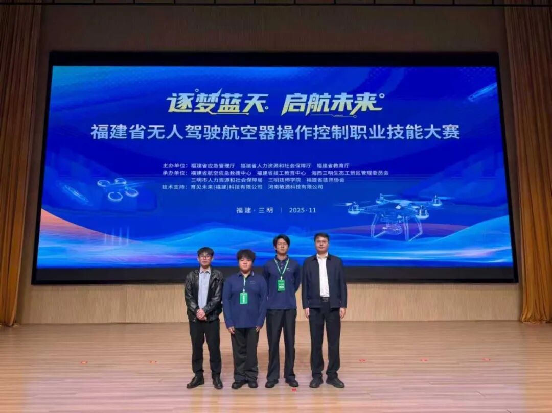 11月13日至18日,2025年福建省无人驾驶航空器操作控制职业技能大赛圆满落幕。我院无人机专业学子陈绍炜、陈云龙,在学院副院长何磊、指导老师何陈章的带领下代表学校参赛,从全省30支参赛队伍中脱颖而出,凭借扎实的专业功底、精准的操控技能与稳定的临场发挥,成功斩获大赛三等奖。