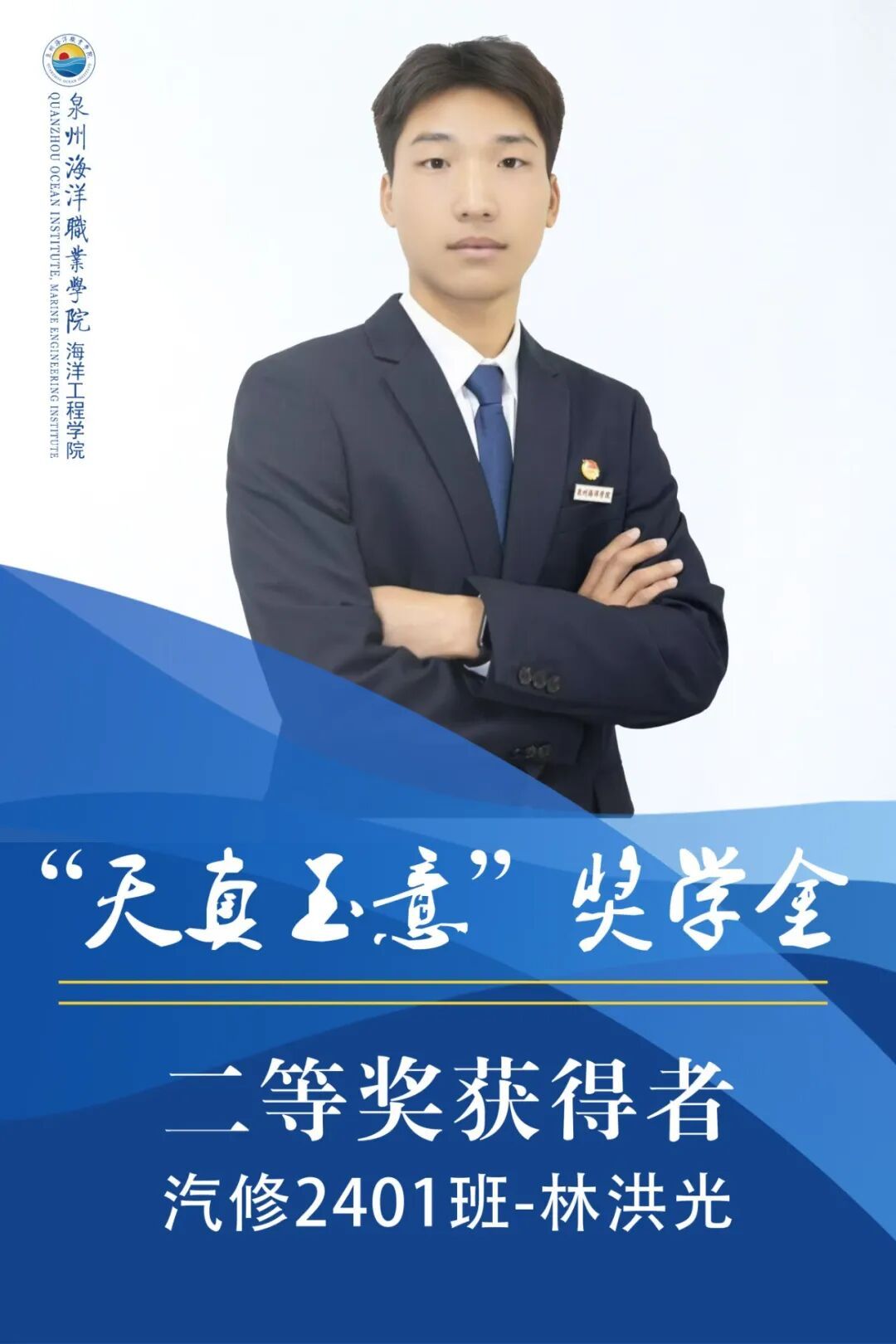 林洪光,男,共青团员,就读于泉州海洋职业学院海洋工程学院2024级汽车制造与试验技术专业。上学年综测、智育均排专业第二,获得2024年泉州海洋职业学院海洋工程学院优秀标兵,获得2025年泉州海洋职业学院学风建设先进个人,获得2025年泉州海洋职业学院优秀共青团员,获得2025年泉州海洋职业学院第十季大学生学习马克思主义理论一马当先三等奖。