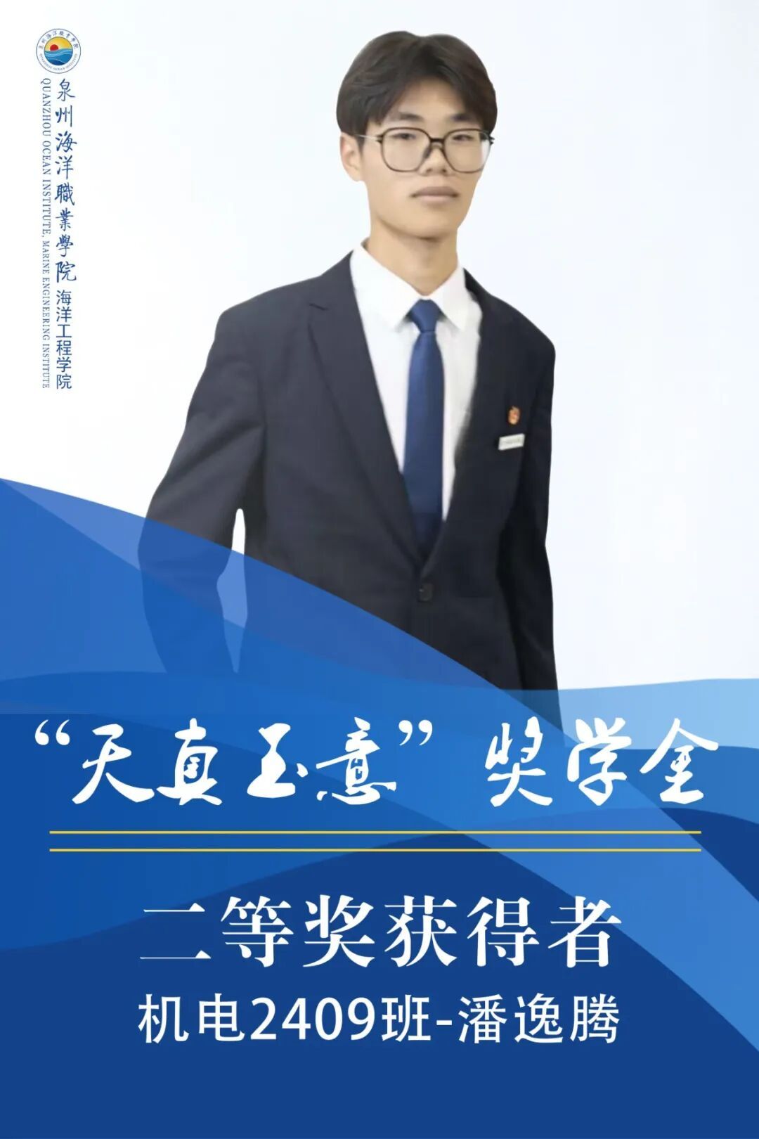潘逸腾,男,共青团员,就读于泉州海洋职业学院海洋工程学院2024级机电一体化技术专业。上学年综测专业第七、智育均排专业第十,获得2024年泉州海洋职业学院优秀标兵,2025年泉州海洋职业学院优秀实践个人,获得2025年泉州海洋职业学院三好学生,获得2025年泉州海洋职业学院第二届研技能比武研学项目三等奖。