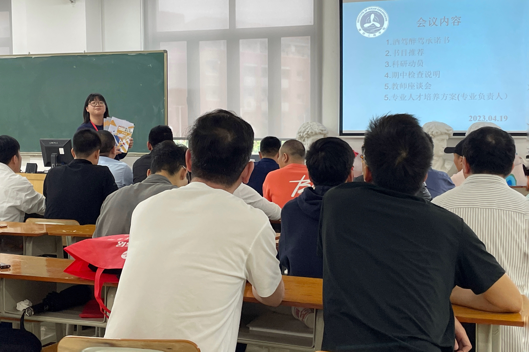 为全面了解本学期教学运行情况,解决教学过程中存在的问题,进一步加强学院学风建设,提高教学质量。4月19日下午,我院在图书馆3楼301教室召开教师座谈会,学院全体教师参会,本次会议由教学秘书戴双霓主持。