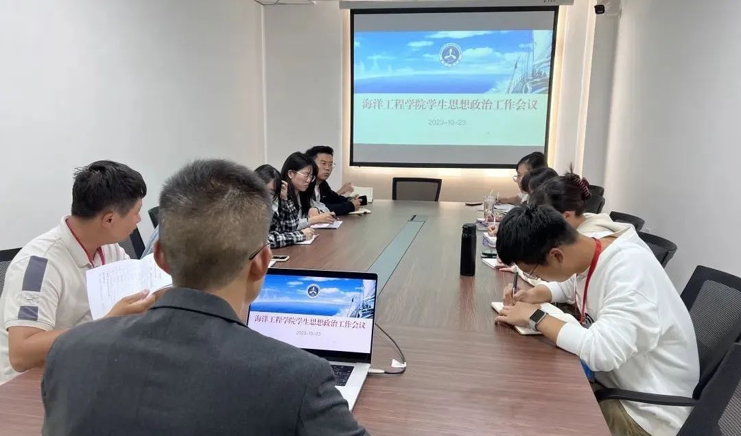 10月23日下午,海洋工程学院在图书馆东侧809会议室召开学生思想政治工作会议。党支部书记周甜、副书记俞建梁及全体辅导员参加。