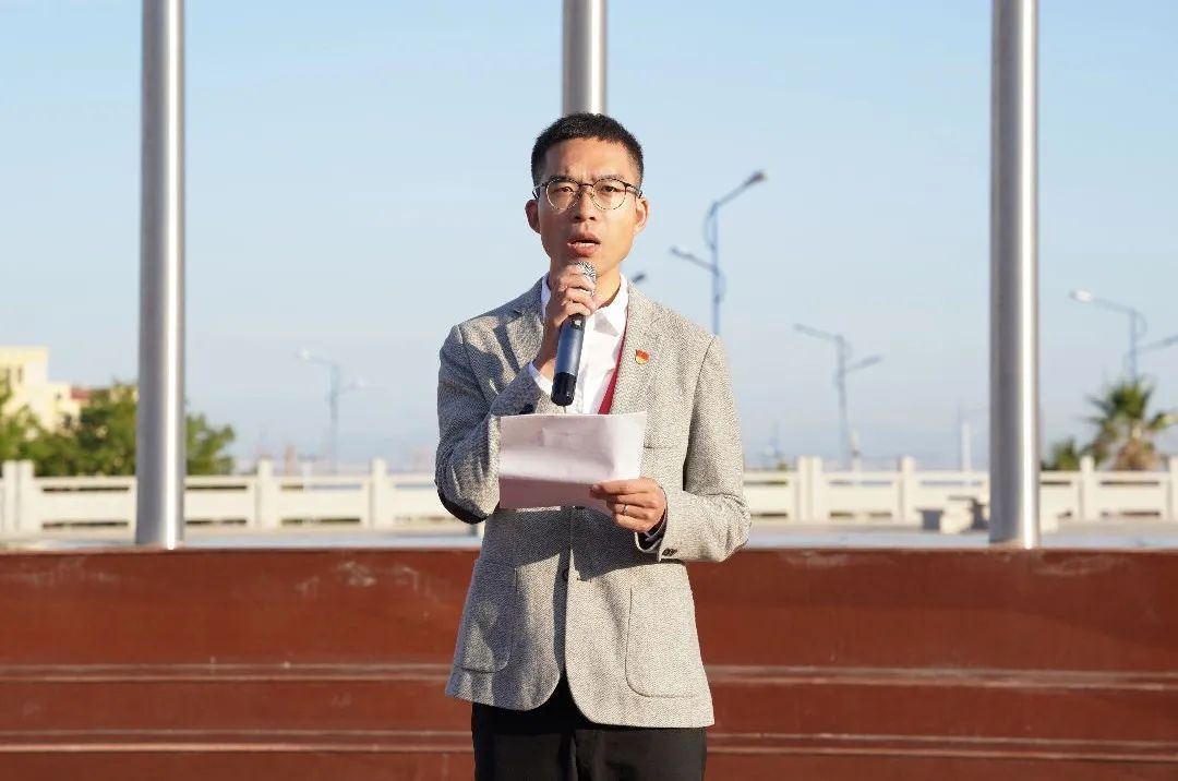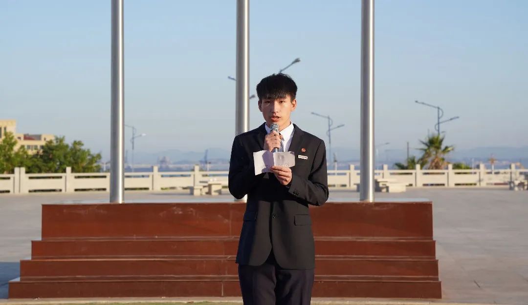 看着飘扬的五星红旗,心中深处是对祖国大地的感恩。陈铸豪作为学生代表讲话,他以中国新时代时期创造的伟大奇迹来鼓舞和号造广大青年应该接好历史的接力棒,不忘初心,牢记使命,以青春之名,书写清澈挚爱,以吾辈之青春,捍卫盛世之中华,在不断的社会探索中,都能做属于自己的“最美青春奉献者”。