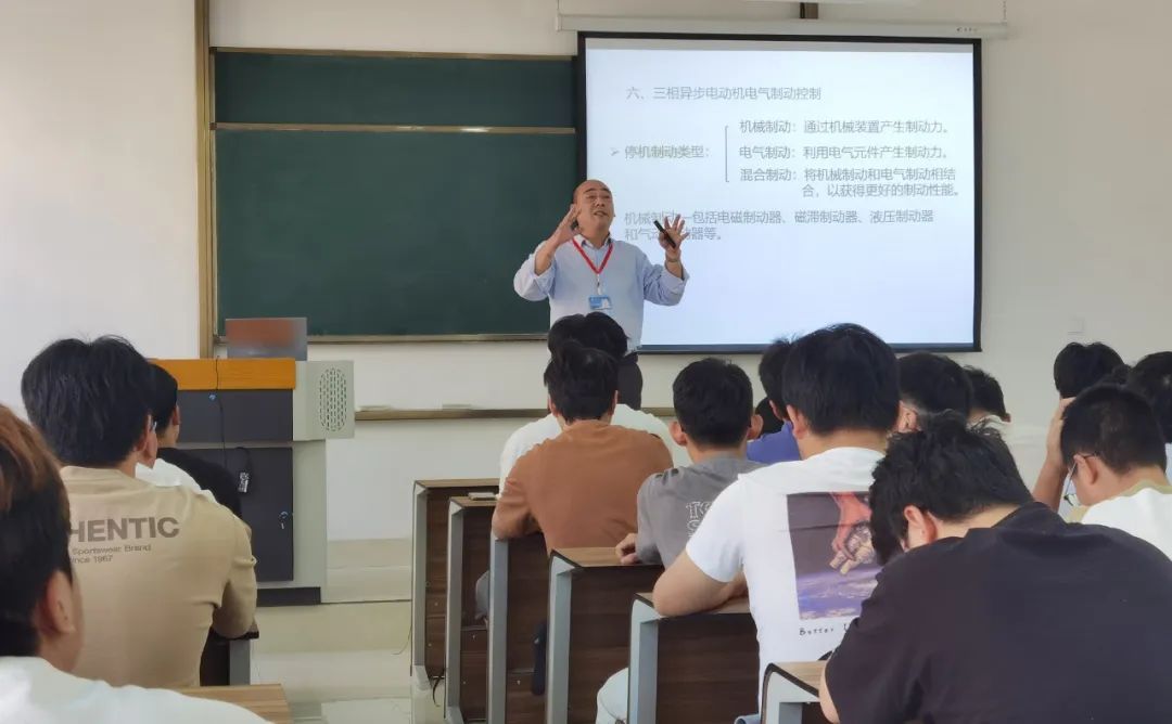 本次观摩课由学院张峻副教授主讲,主讲课程《电气与PLC控制技术》。张老师从三相异步电机和绕阻式电机的差异引入,进行课前回顾。课堂上,借助工作原理图进行讲解分析,加深同学们对电机工作原理的理解。课程内容丰富、讲课生动,善于调动学生的情绪,利用模块化演示激发学生兴趣。
