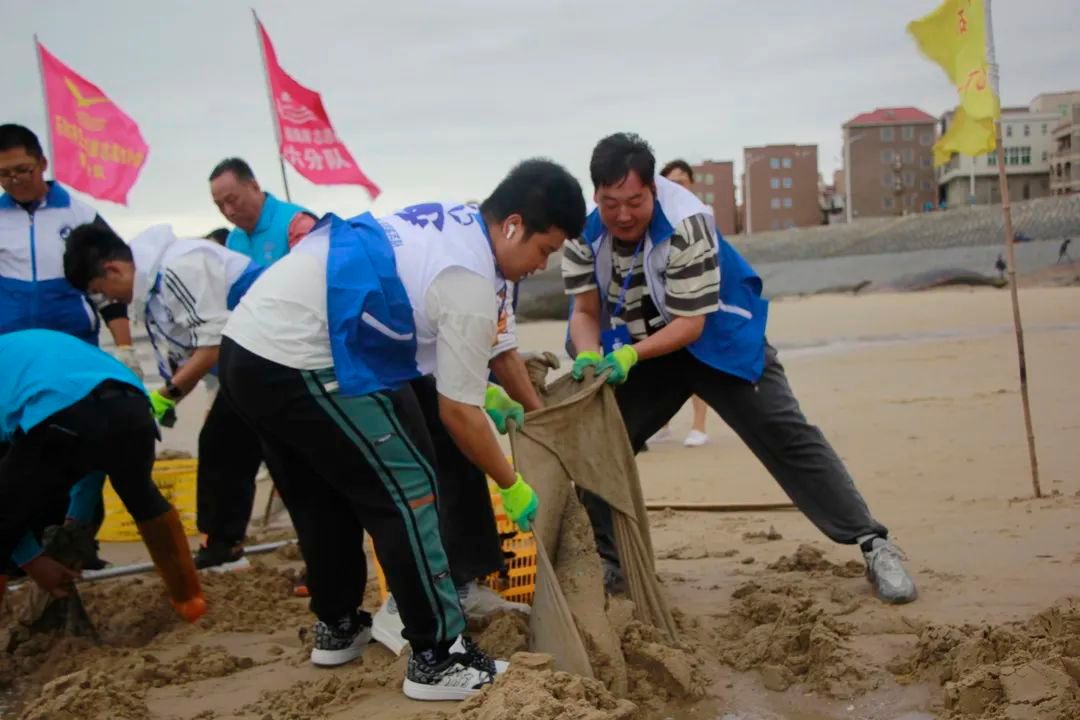 期间,志愿者们分布在海滩的各个角落,沿着海滩有序开展活动。将海滩上的生活垃圾、烟头、渔网等捡起来一一装进垃圾袋。尽管寒风凛冽,但志愿者们仍然以饱满地热情投入到工作中,他们不怕苦不怕累,将雷锋精神贯彻到底,还原海滩原有的样貌。