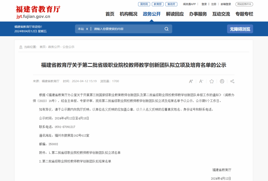 此次入选省级职业院校教师教学创新培育团队,是我院教学工作的又一重大突破,学院将继续加强教师能力培养,创新教育教学模式,为推进高水平教师团队建设赋能。