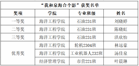 为进一步加强校园文化建设,展示同学们的摄影才华,探索出学校的美好瞬间,海洋工程学院于近期开展“我和泉海合个影”照片征集活动。本次活动得到了学院同学的积极响应,共有230名同学报名参赛。