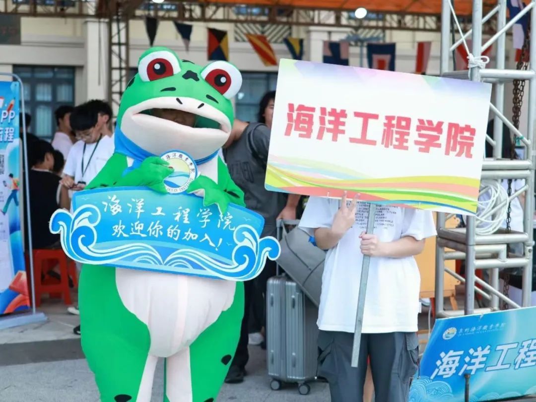 团委学生会的成员们身着玩偶服,展现出可爱形象,高举着色彩鲜明的标牌,在人群中穿梭。他们不畏炎热,用汗水和真诚的微笑迎接每一位新生,帮助他们卸下旅途的疲惫,轻松迈向梦想的起点。