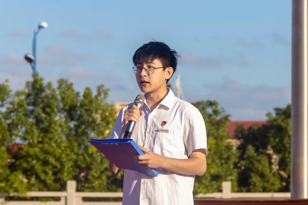2022级智能控制技术专业学生刘雨杰代表全体学生在升旗仪式发言。他讲述了爱国精神的重要性,并呼吁新时代大学生将个人梦想与国家命运紧密相连。他提倡大家努力学习,积极参与社会实践,以实际行动表达对祖国的热爱,共同为实现中华民族伟大复兴的中国梦而奋斗。