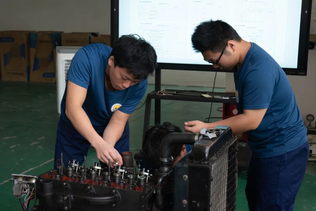 在实物拆装环节演示中,四位参赛选手分工明确,展现出高效协同的工作状态。他们围绕柴油发动机进行操作,按照预先制定的步骤,依次进行拆卸。在操作的同时,他们不断汇报进度,确保每个步骤的准确性和完整性。团队成员还细心记录了关键数据,为后续的故障分析和性能优化提供了重要依据。在整个过程中,他们展现了高度的专业性和卓越的团队协作精神。