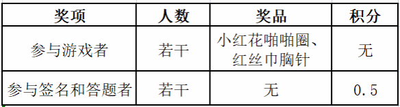 签名活动可以获得签到码,线上答题知识竞赛获得签退码。其余小游戏全凭自愿参与,参与者可获得精美小礼品一份。