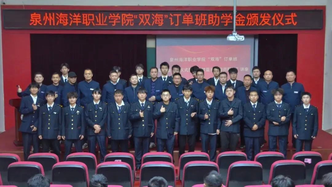 此次泉州海洋职业学院“双海”订单班助学金颁奖仪式暨“筑梦蓝海,船员职业”讲座圆满落幕,让我们再次向获奖同学表示热烈的祝贺!同时,也希望同学发扬拼搏精神,在接下来的学习中再接再厉、勇创佳绩!