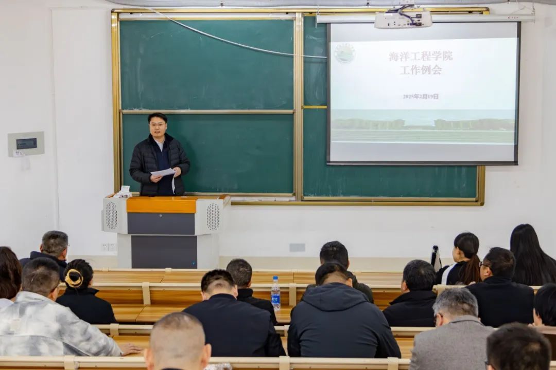 为更好的推进新学期教师工作,2月19日下午,海洋工程学院教学工作例会在3号教学楼3200教室开展。出席本次例会的有学院领导有院长陈景锋,副院长林杰民、何磊。