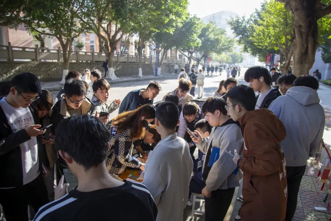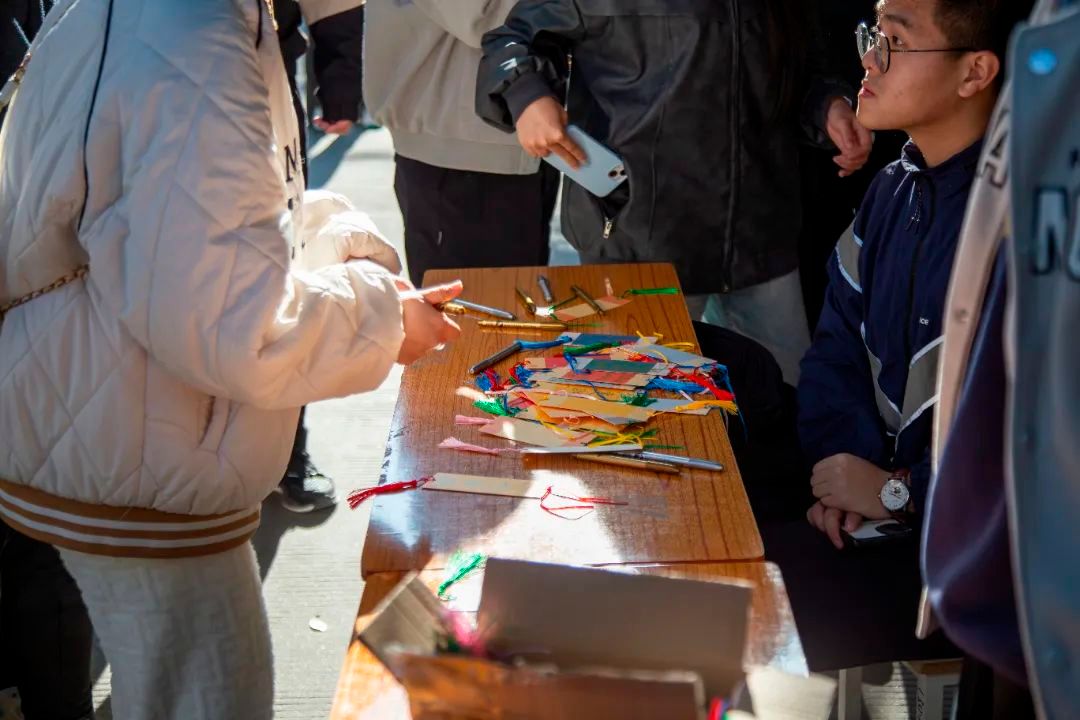 活动现场,“龙抬头诗词飞花令”环节,同学们出口成章,流利背诵诗句、说出吉利成语,顺利拿下印章。猜龙谜语处也不遑多让,大家绞尽脑汁,猜出答案后兴奋领章。最火爆的要数“龙携好运,祈福于其身”,同学们用两枚印章换祈福卡,写下新学期目标,挂在龙形装饰上,满满都是对未来的期待。