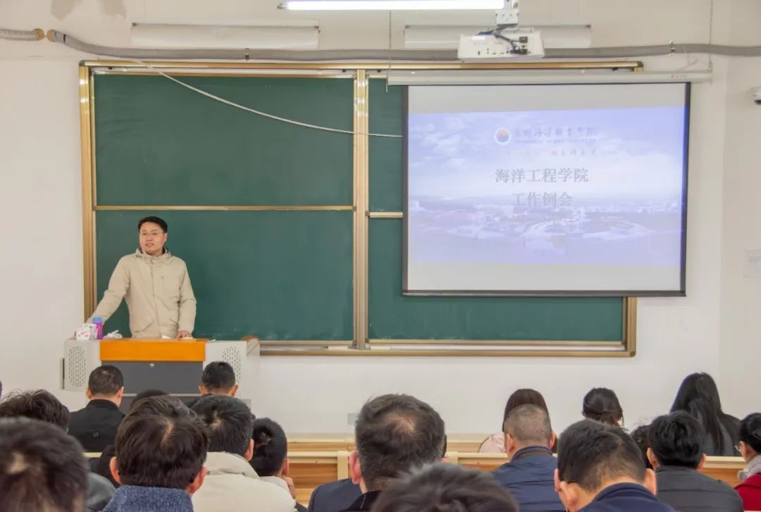 会议伊始,学院对新入职教师陈程发、罗梦龙进行了介绍,欢迎他们加入海洋工程学院大家庭,期望他们在教学岗位上发光发热,为学院注入新活力。