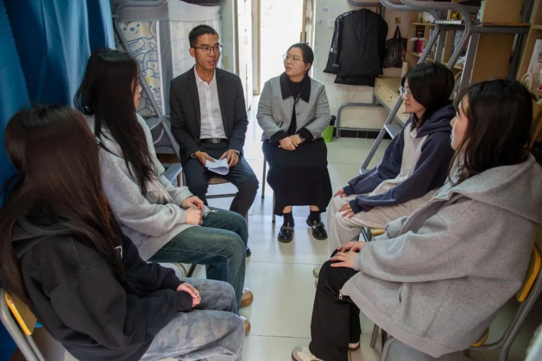 交流中,周甜、俞建梁首先对星级宿舍的卫生情况给予高度肯定,并鼓励同学们以更高标准要求自己,强调良好习惯在学习与生活中的重要性。针对同学们反馈的校园生活问题,他们认真倾听、详细记录,并承诺积极反馈解决,切实为同学们排忧解难。