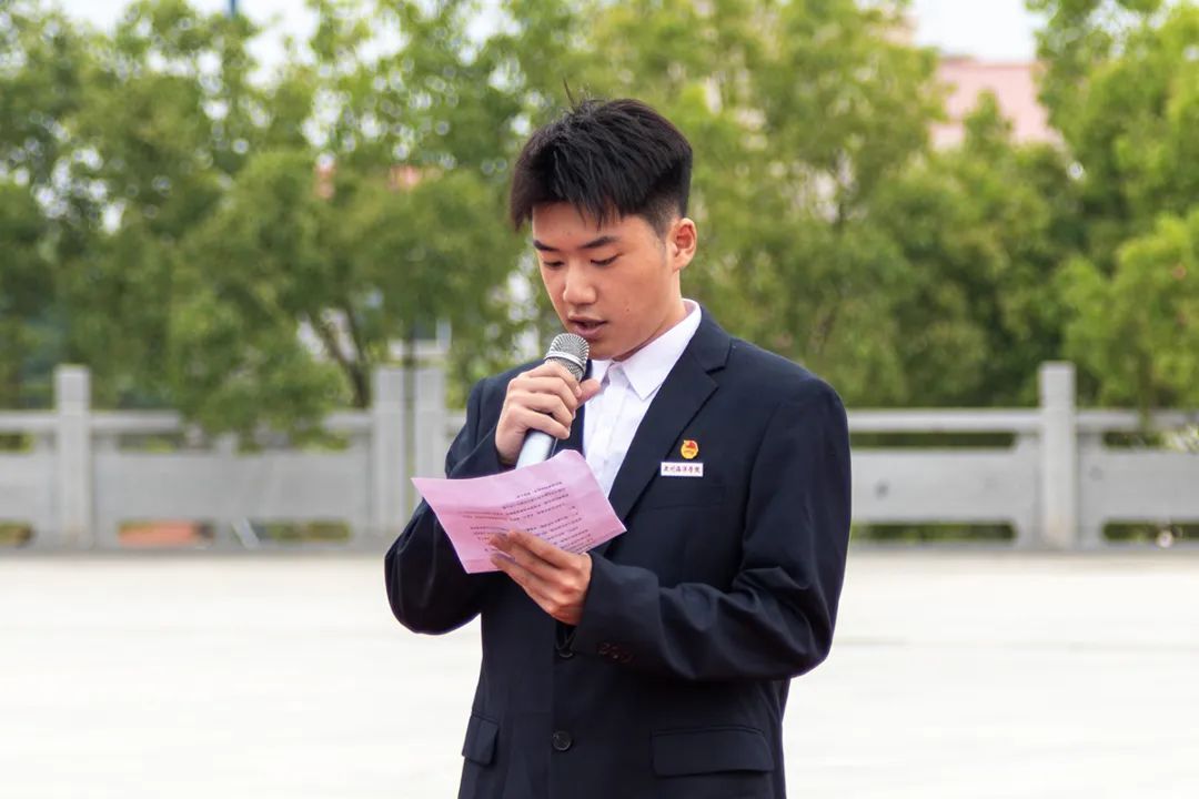 俞建梁宣读了雷锋月知识竞赛获奖人员和月度优秀干事获奖名单。 俞建梁为雷锋月知识竞赛获奖人员颁发证书 廖闽为月度优秀干事颁发证书 升旗仪式虽已结束,但同学们心中的爱国热情却久久不能平息。这不仅是一次简单的升旗仪式,更是一次心灵的洗礼和精神的升华。让我们带着这份热情与信念,在学习和生活中继续努力奋进,用实际行动诠释新时代大学生的使命与担当。