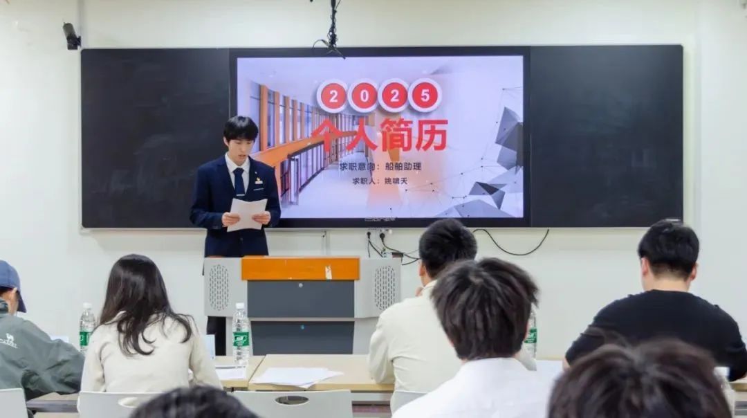 比赛现场,选手们依次上台,结合PPT进行自我介绍,展示个人经历、求职意向、岗位认知等内容。在阐述过程中,选手们分享了在校学习成绩、实践活动、实习经历,以及从中获得的技能与成长。