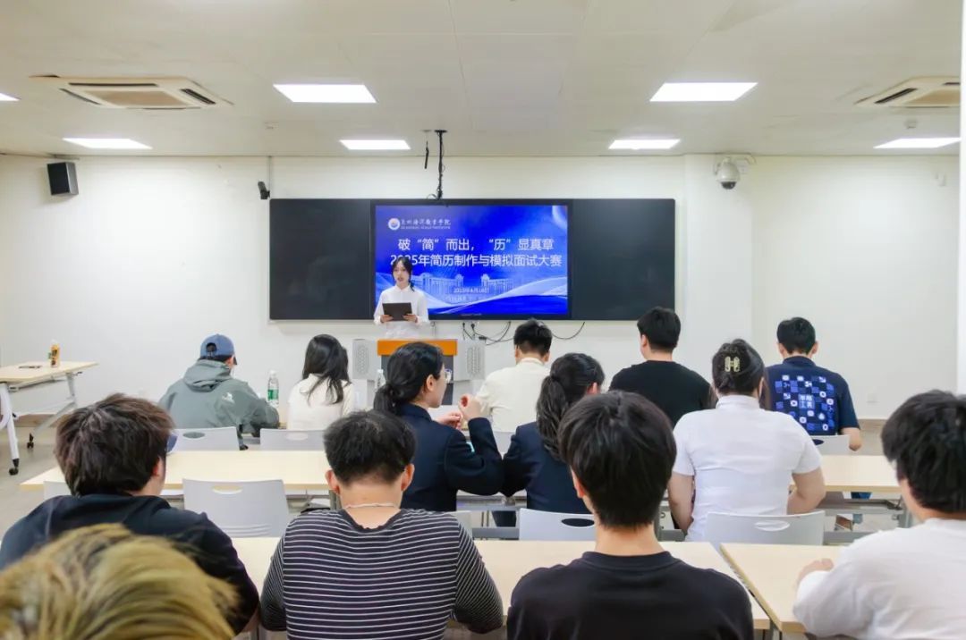 为促进毕业生高质量就业,提升学生的简历制作水平和就业能力。4月16日,海洋工程学院简历设计与模拟面试大赛在三创学院二楼智慧教室开展,学院辅导员杨钢、韩硕、陈书军、黄颖颖、林荧担任评委。