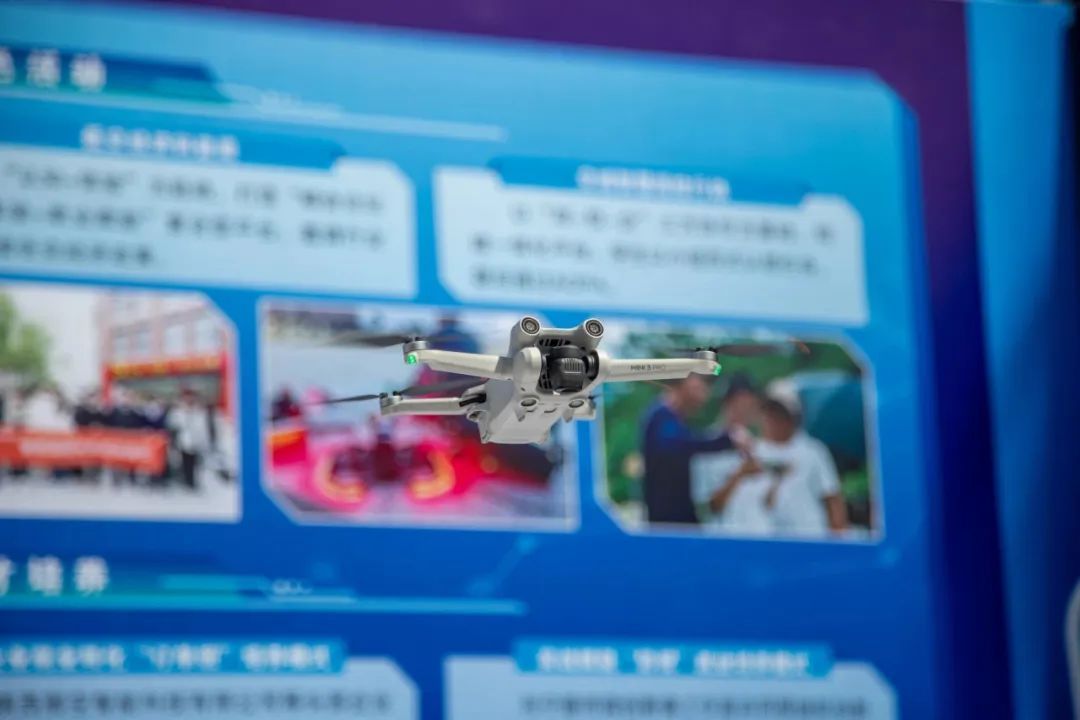 在展示区布置过程中,我校师生精心设计,重点突出无人机社团建设成果及专业发展情况,充分展现学校特色。 活动中,我校无人机社团及无人机赛队展示了科技实践成果。讲解员李松源介绍了社团的特色活动,包括低空经济科普、空域智慧巡检、校企合作“订单班”培养模式及影视航拍实训等,并分享了无人机技术在社会服务中的应用案例,体现科技与创新的结合。社团成员还现场演示了无人机起飞、悬停、降落等操作,展现了团队的专业技术能力。