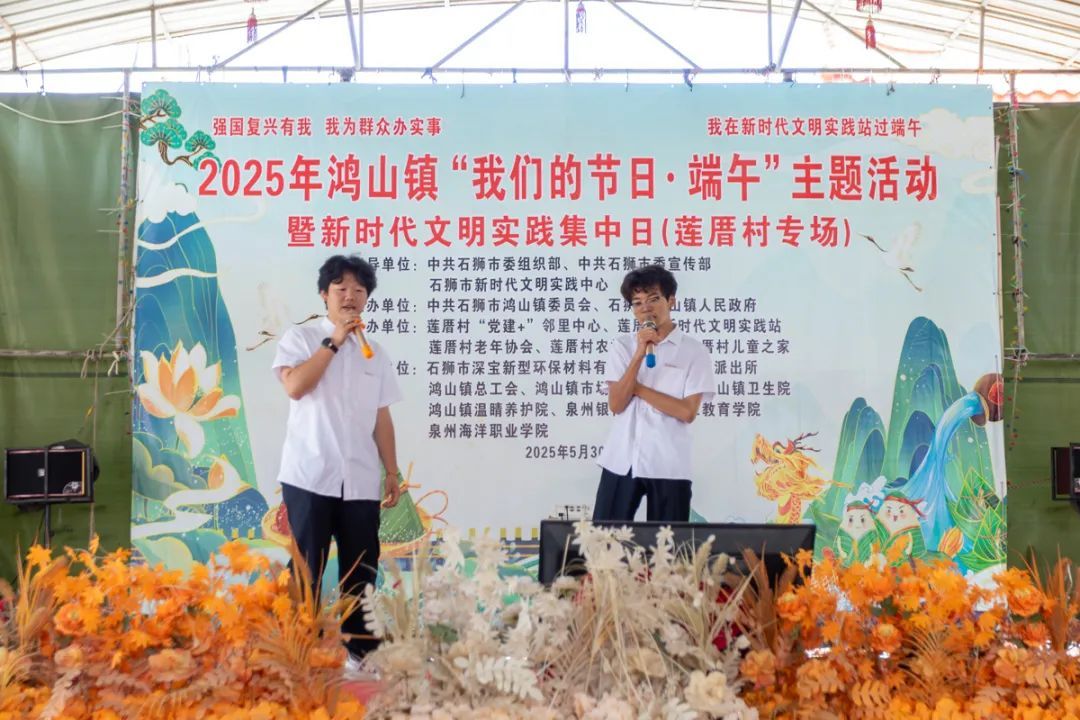 5月30日,海洋工程学院“蓝鲸”志愿者协会协助莲厝村居委会在石狮市鸿山镇莲厝村开展了2025年鸿山镇“我们的节日·端午”主题活动。