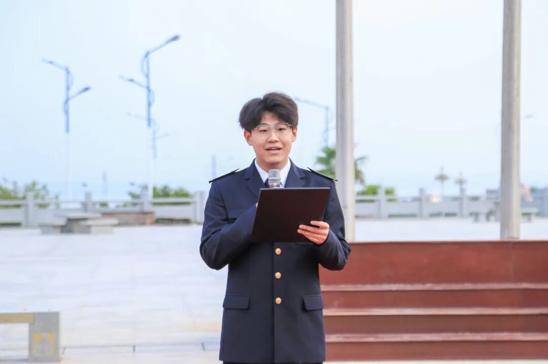 2024级轮机专业学生代表赵博文在国旗下向师生们阐述了阅兵精神的内涵。他表示,阅兵精神是“犯我中华者,虽远必诛”的铁血担当,体现在边防战士、科研工作者等无数人的坚守中;也是“少年强则国强”的使命召唤,青年官兵的誓言便是对祖国的郑重承诺。他呼吁同学们将爱国情怀融入日常,以认真学习、挑战自我等微小进步践行爱国,还倡议大家以阅兵精神为帆、爱国之心为桨,让青春在为祖国和人民的奋斗中绽放光芒,向着强国与美好未来启航。