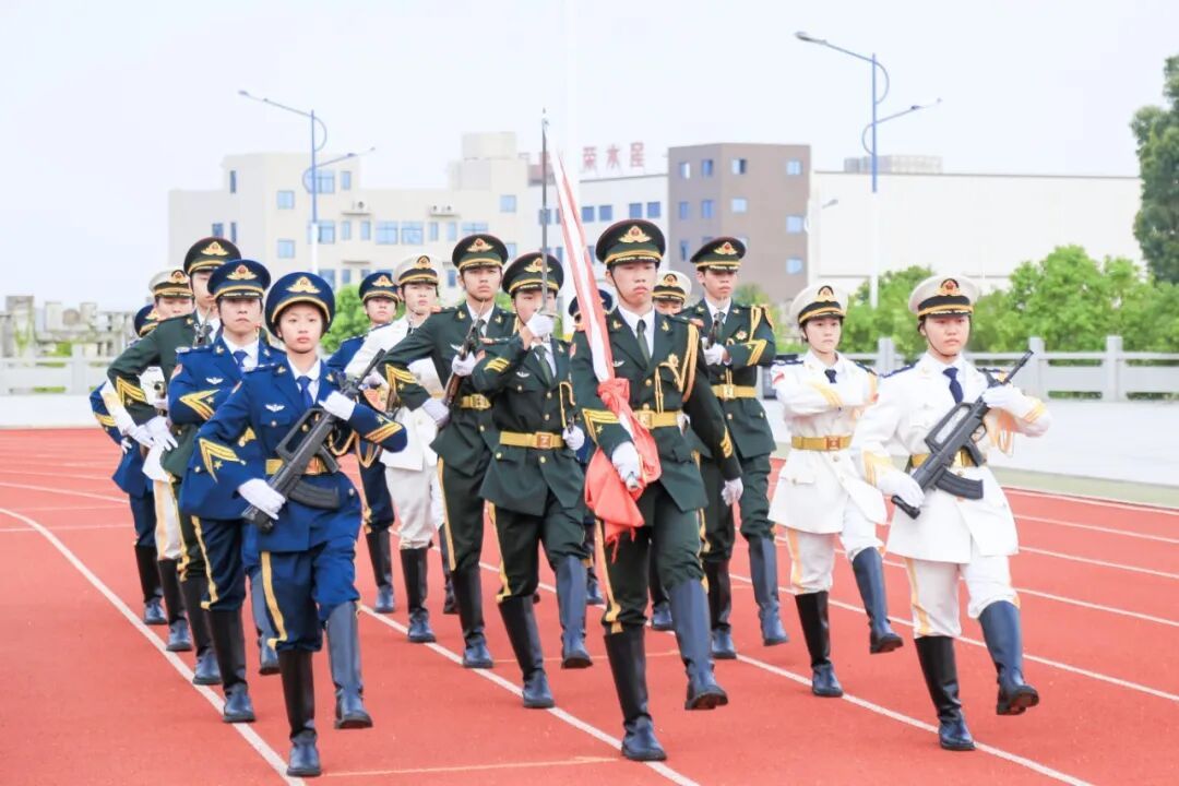清晨的阳光洒向校园,微风轻拂着操场上整齐排列的身影,升旗仪式正式开始。英姿飒爽的国旗护卫队迈着铿锵有力的步伐护送国旗入场。