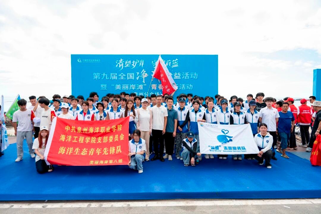 9月28日,第九届全国净滩公益活动暨“美丽岸滩”青春先行活动在石狮东大垵启动,海洋工程学院党支部书记周甜、团委书记廖闽携海洋工程学院“蓝鲸”志愿者协会100余名志愿者与来自社会各界的志愿者们化身海岸清洁卫士,用实际行动守护蔚蓝海岸线。