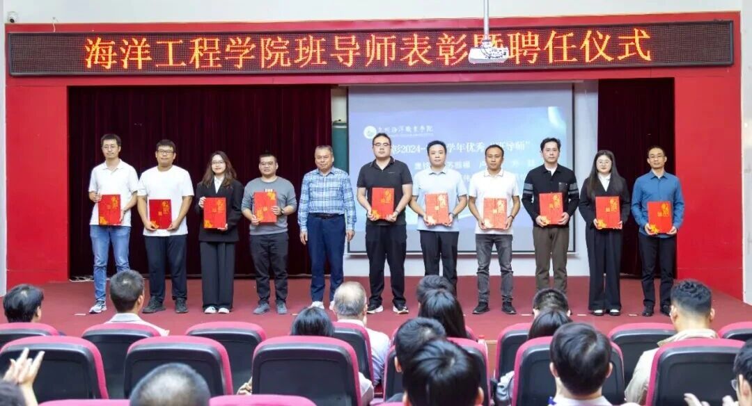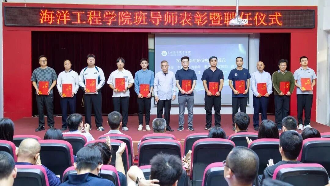10月29日,海洋工程学院班导师表彰暨聘任仪式在二号楼教学楼2204隆重召开。学院院长陈景锋、执行院长黄加亮、党支部书记周甜、副院长何磊、副院长高睿、院长助理兼办公室主任柯洋洋,学院全体老师及2025级新生代表参会。本次仪式由党支部副书记俞建梁主持。