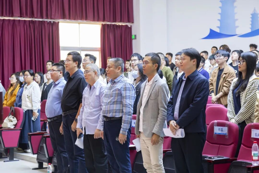 仪式伊始,全体起立奏唱国歌。