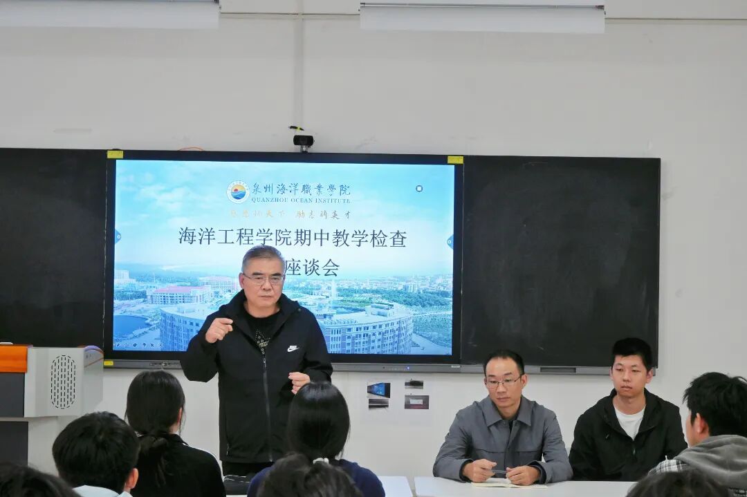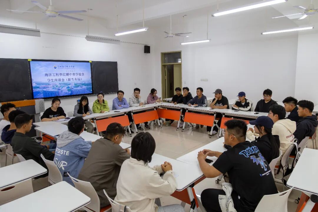 10月28日下午,海洋工程学院期中教学检查学生座谈会在3号教学楼3404、3503教室召开。出席本次座谈会的有院长陈景锋、执行院长黄加亮、副院长何磊、各专业负责老师及24、25级各专业学生代表。