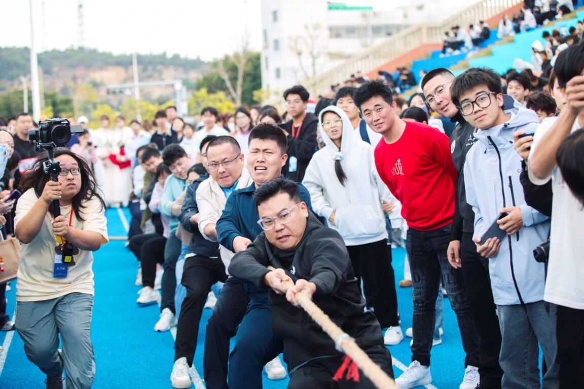 拔河现场,学院教师队伍一声声呐喊,一次次发力。每个人都奋力拼搏,他们眼神透露出了坚定与自信。