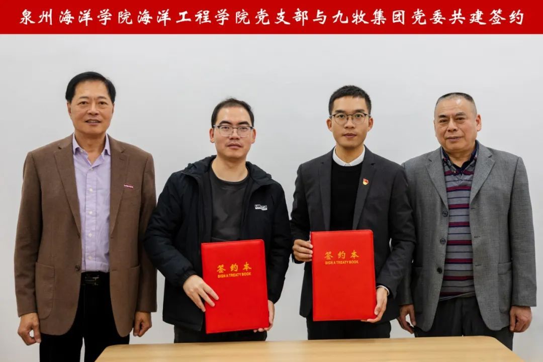 为认真贯彻落实党的二十大精神,探索构建优势互补、双向促进的党建工作新格局,提高基层党建工作水平,进一步巩固学习实践活动成果,深化“创先争优”活动,海洋工程学院党支部和九牧集团党委现场签订校企共建协议。