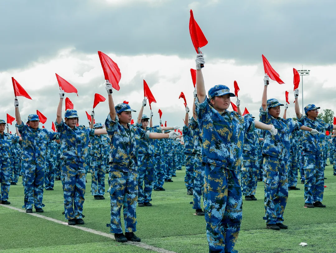 海洋工程学院新生们身着迷彩服,手持色彩鲜明的信号旗,动作协调一致,彰显出军训的严谨与纪律。随着指挥员的口令,旗手们挥动旗帜,在空中划出优美的弧线,传递着无声的信息。与此同时,鼓手们以铿锵有力的鼓点为表演注入节奏,鼓声激昂,与旗语的优雅动作相得益彰,展现了学员们在军训中培养出的团队精神和协作能力。