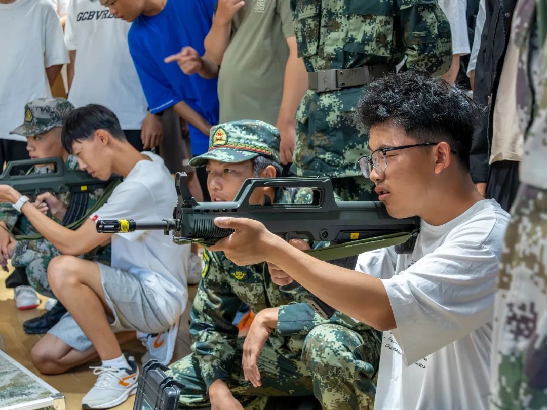 紧接着,同学们在图书馆一楼东侧大厅,体验电子打靶,感受到了射击的魅力。在国防教育学院学长们的悉心指导下,同学们认真学习了射击的基本要领和注意事项。他们屏息凝神,紧握枪支,准备迎接挑战。射击开始,同学们纷纷扣动扳机,激光子弹飞向电子靶。电子打靶系统实时反馈了同学们的射击成绩,每一次射击都是对技艺和心理素质的考验。在充满挑战的氛围中,同学们不断提升射击水平,也收获了成就感和自豪感。