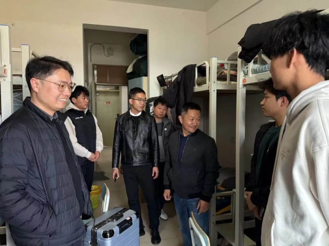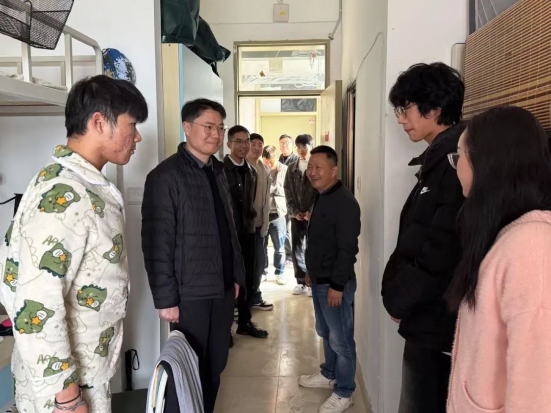 领导和辅导员们亲切地与同学们交流,仔细询问假期生活及新学期的规划,认真倾听大家在学习和生活上的需求。同时,着重强调了宿舍卫生、用电安全等问题,提醒同学们及时调整状态,以积极的心态迎接新学期,养成良好生活习惯,做好学习规划。