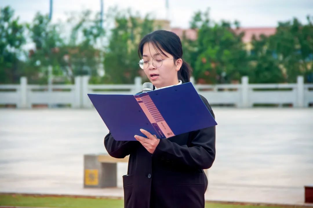 辅导员黄婷婷作为教师代表发言,青春是逐梦旅程,奋斗是逐梦必需。她以匡衡、祖逖为例证,点明励志助青春突围困境,其中感恩是必备品质,感恩国家、学校、老师与父母。结尾呼吁同学以奋斗、励志为引,心怀感恩,于青春舞台逐梦奋进。