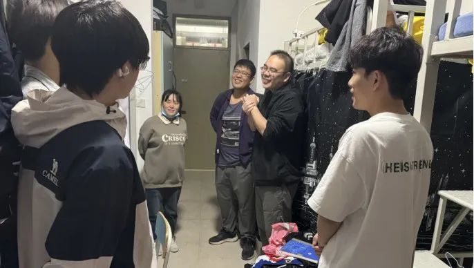 11月18日,朱鸿东、刘长清在辅导员黄明芳的带领下走进24级机电9班、10班、11班的宿舍。走访过程中两位老师对学生的生活给予了关心,并对专业学习和未来规划进行了引导,帮助同学们树立正确的择业观和就业观。